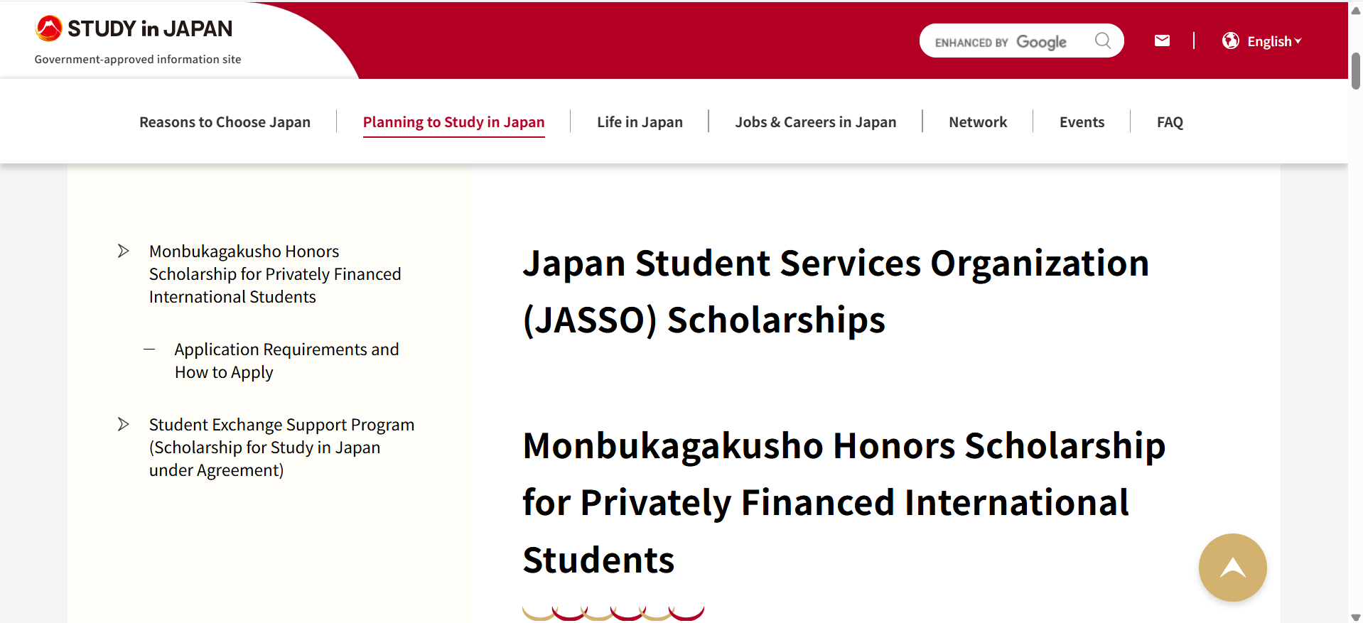 Beasiswa dari Japan Student Services Organization, termasuk Monbukagakusho Honors Scholarship untuk pelajar internasio...