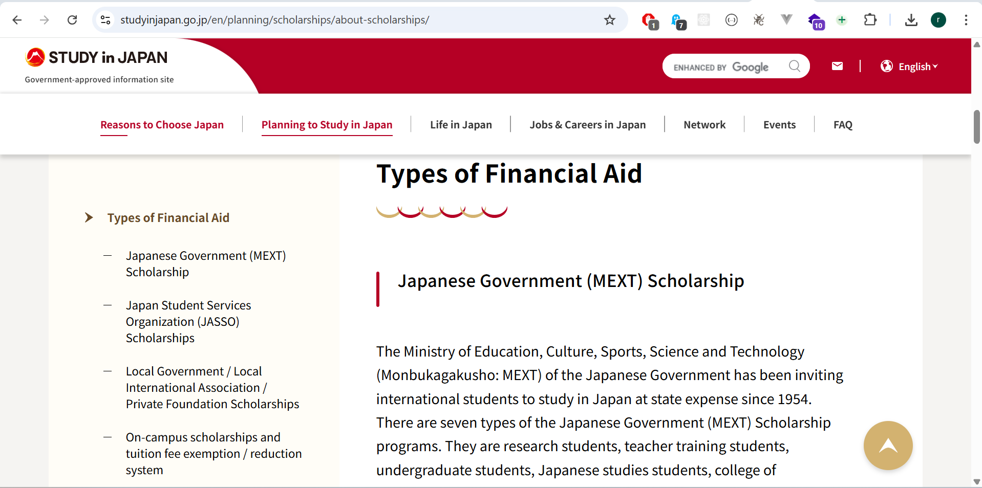 Program resmi dari pemerintah Jepang melalui Kementerian Pendidikan (MEXT), tersedia untuk S1, S2, dan penelitian.