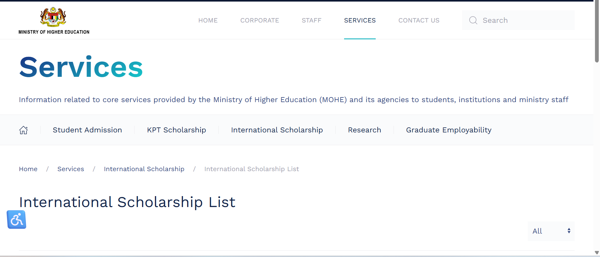 Beasiswa internasional yang disediakan oleh Kementerian Pendidikan Tinggi Malaysia.