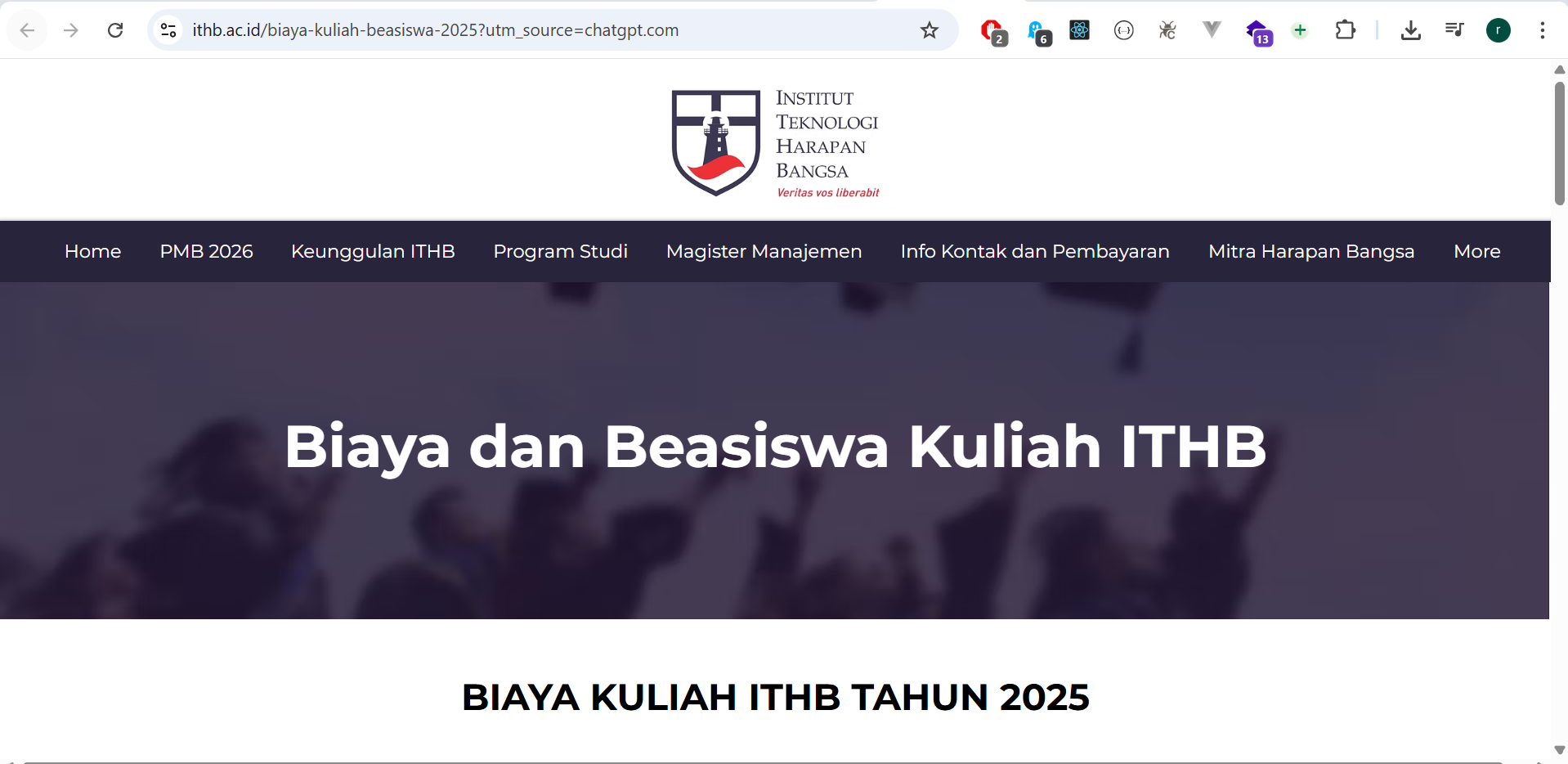 ITHB memberikan pendidikan berkualitas global dengan biaya yang terjangkau. ITHB juga memberikan beasiswa untu...