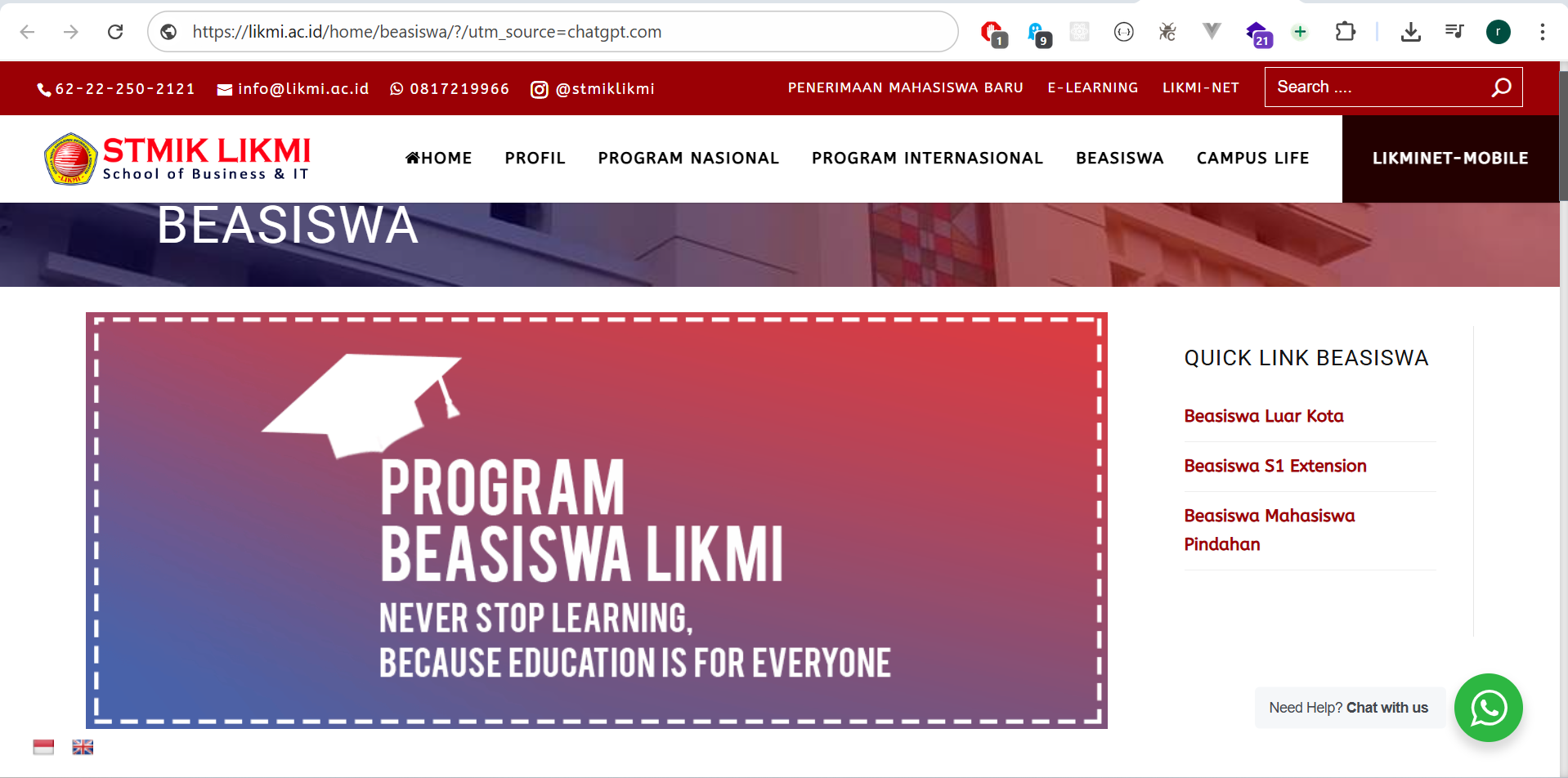 Program Beasiswa STMIK LIKMIProgram beasiswa terbaru dari STMIK LIKMI, Bandung, Jawa Barat. Berfokus pada bida...