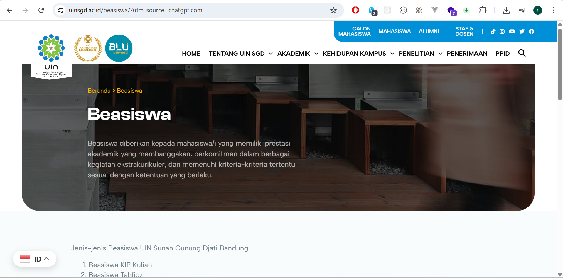 Jenis-jenis Beasiswa UIN Sunan Gunung Djati BandungBeasiswa KIP KuliahBeasiswa TahfidzBeasiswa PrestasiBeasiswa Bank Ind...
